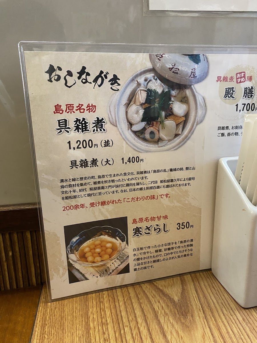 If you're looking for something more substantial, the 具雑煮殿膳 presents a generous portion of the savory stew, while the 寒ざらしと具雑煮並 offers a winter-special dish combining chilled soba with the rich flavors of 具雑煮. For those with dietary preferences, the 具雑煮 大 椎茸抜き provides a version of the dish without shiitake mushrooms, ensuring everyone can enjoy it to their liking.